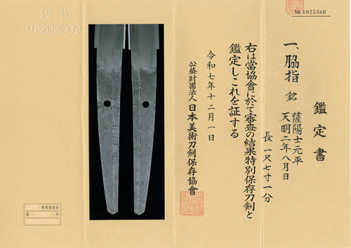 NBTHK(Tokubetsu HOZON) certificate